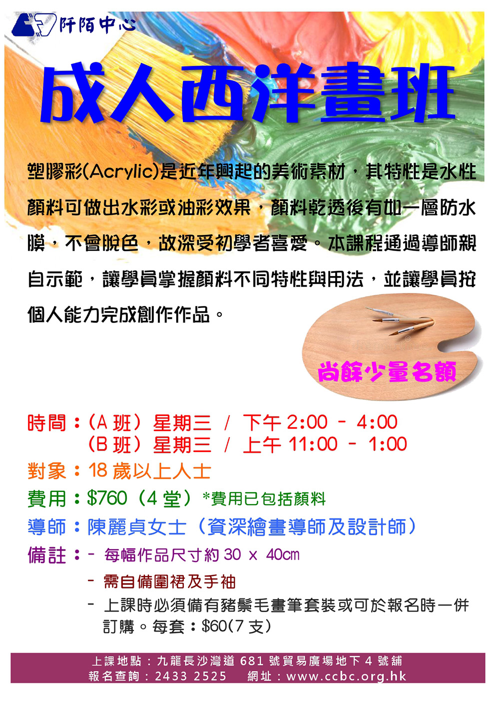 費用:$760﹙4堂﹚ *費用已包括顏料